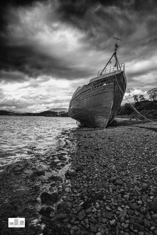 Back in July I posted the same subject (which can be found here) approached from a slightly different way, so I thought I would share this alternate interpretation of the same wreck. In an attempt to demonstrate that by moving your position in relation to the subject you have the possibility to generate a subtly different image. I think there are even more images in this boat given some better weather and also in placing the boat in it’s landscape so keep watching.