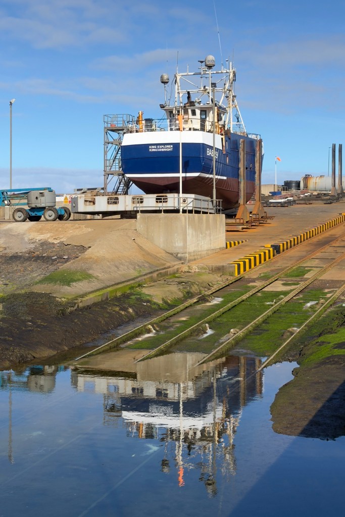 On this occasion, I visited Macduff, where I found the King Explorer undergoing a refit. I was captivated by the scenes’ strong leading lines and verticals. Seeing these modern vessels out of the water really makes you appreciate how much remains hidden below the waterline.
